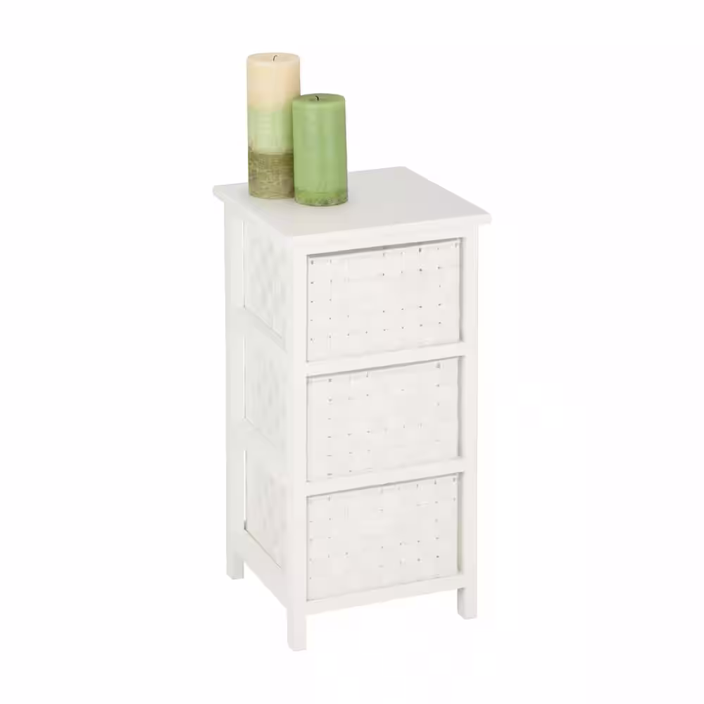 Honey-Can-Do 12 in. W x 24 in. H White Wood 3-Drawer Cabinet with Woven Drawers
