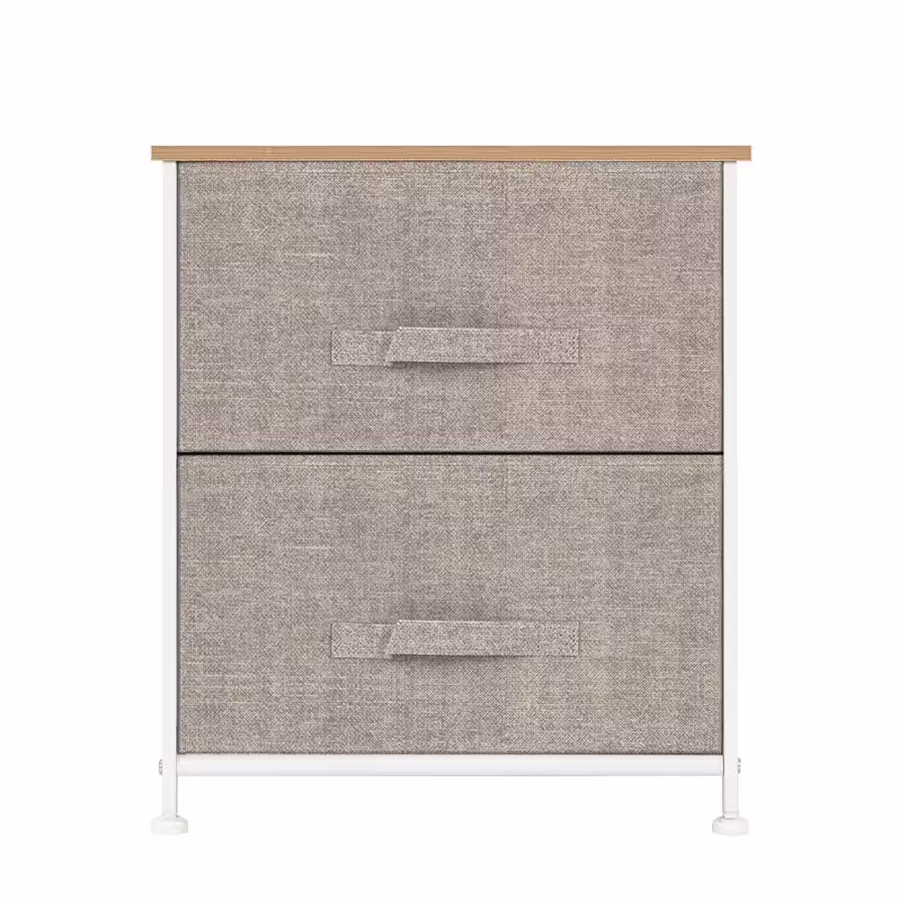 None 11.87 in W. x 20 in. H Beige 2-Drawer Fabric Storage Chest with Beige Drawers