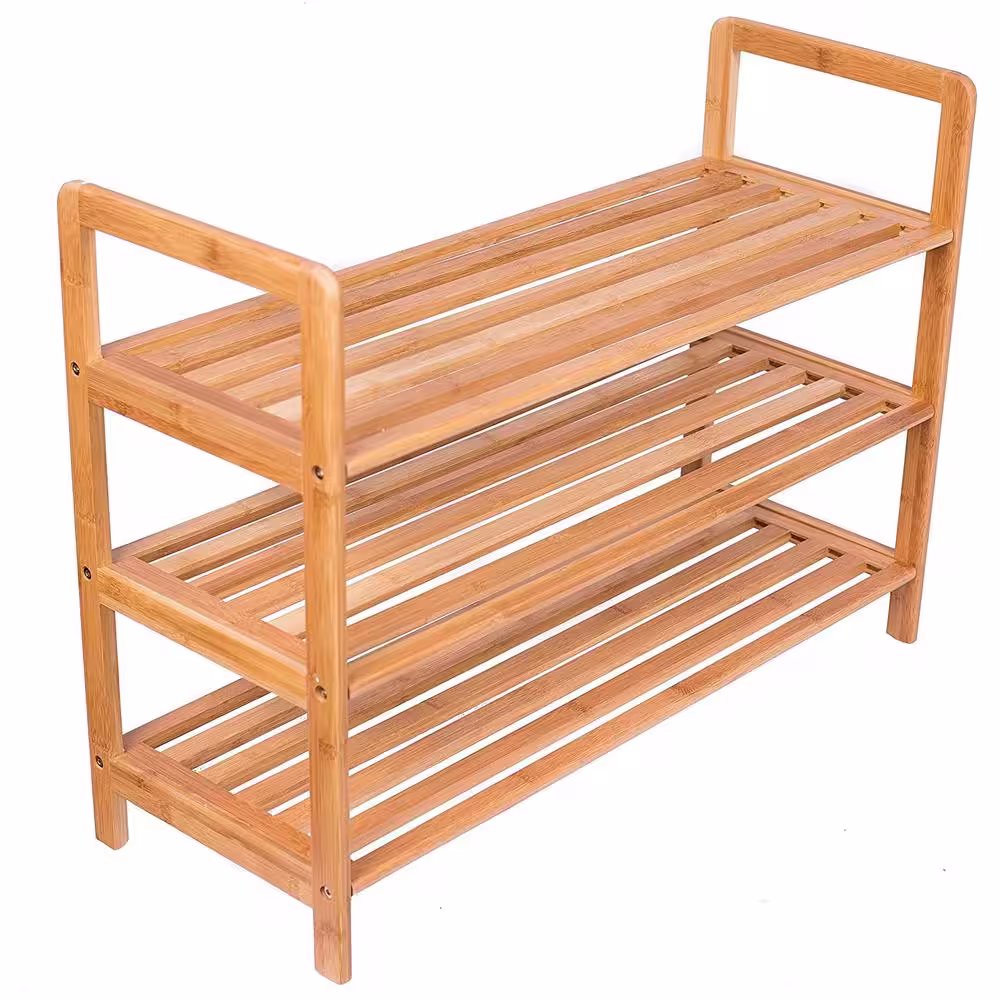 BirdRock Home 20.1 in. H 9-Pair 3-Tier Bamboo Free Standing Shoe Rack with Handles