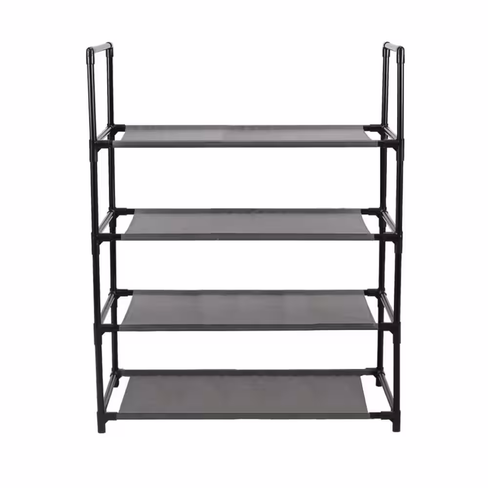 J&V TEXTILES 23 in. H x 29 in. W Space Saving 12-Pair Black Stainless Steel Shoe Rack