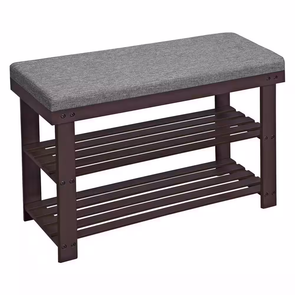 None 19.3 in. H 6-Pair Brown Bamboo Shoe Rack Bench 3-Tier Storage Shelf