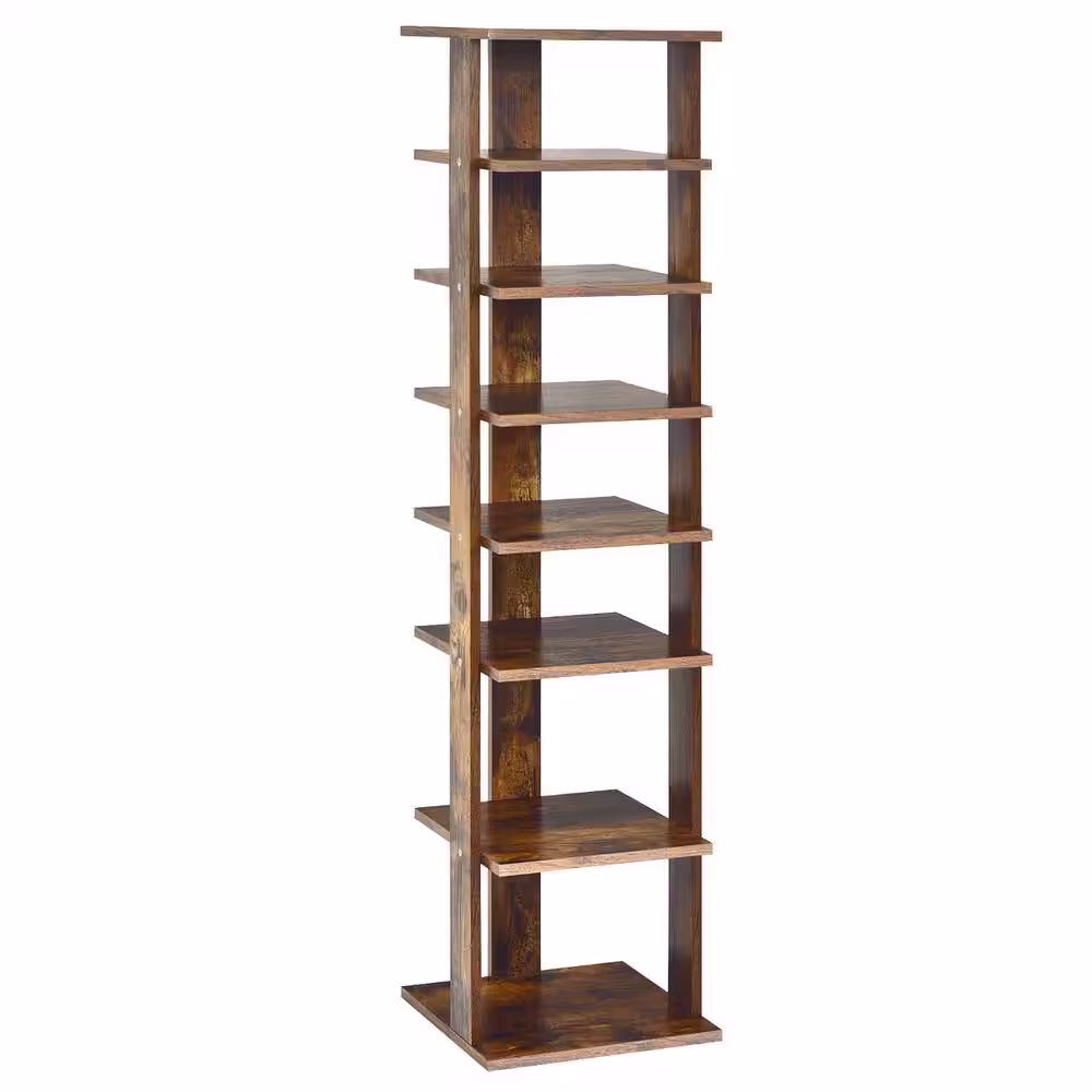 Costway 43.5 in. H 7-Pair Shoe Rack Free Standing Shelf Storage Tower Rustic Brown