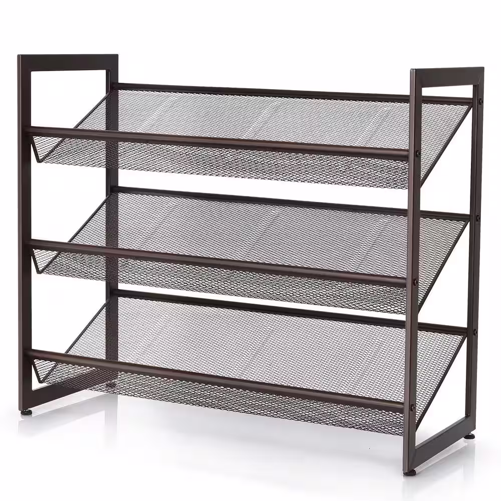 None 16 in. H 10-Pair Black Metal 2-Tiers Shoe Rack