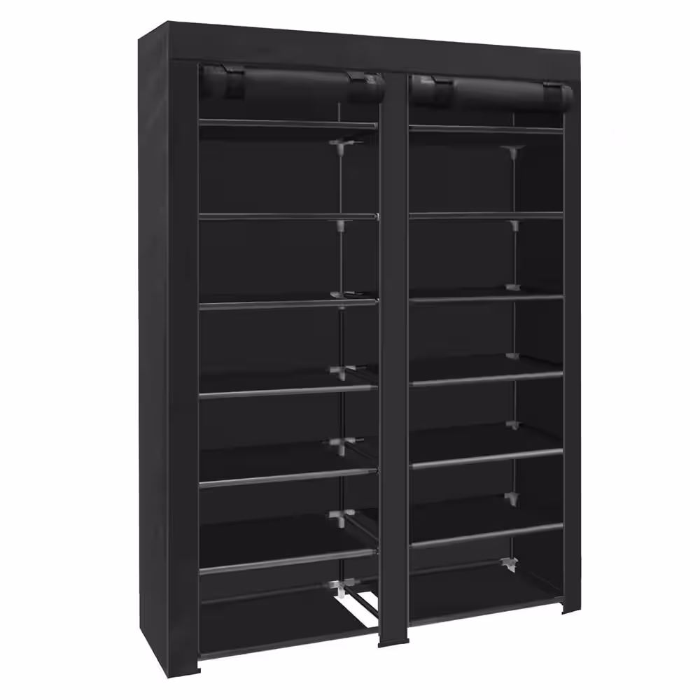 None 49 in. H 28-Pair Black Metal 7-Tiers Shoe Rack