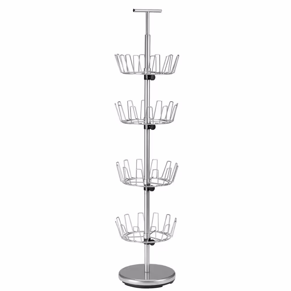 HOUSEHOLD ESSENTIALS 52.75 in. H 24-Pair 24-Tier Silver Steel Shoe Rack