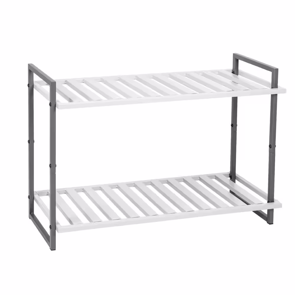 None 20 in. H x 30 in. W 6-Pair 2-Shelf White/Gray Steel Freestanding Shoe Rack