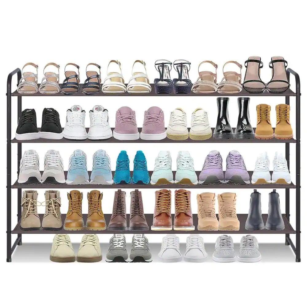 None 32.4 in. H 24-Pair Brown Metal Shoe Rack