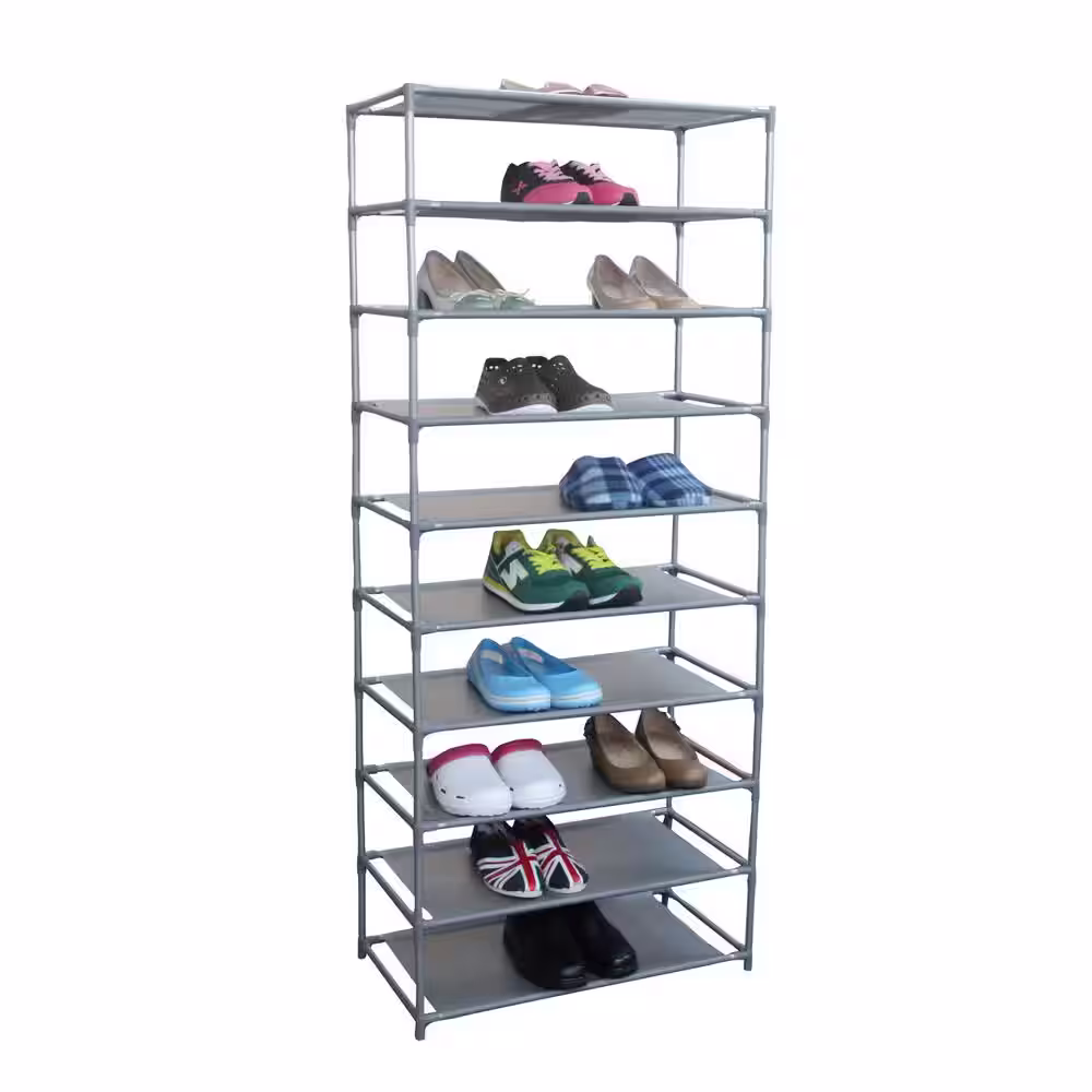 Home Basics 59 in. H 50-Pair 10-Tier Gray Metal Shoe Rack
