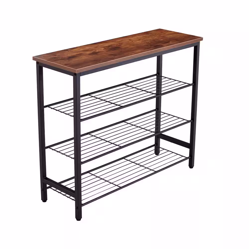 maocao hoom 26.75 in. H x 31.49 in. W 20-Pair Black Metal and Wood Shoe Rack Multifunctional Storage Shelf with Brown MDF Top Board