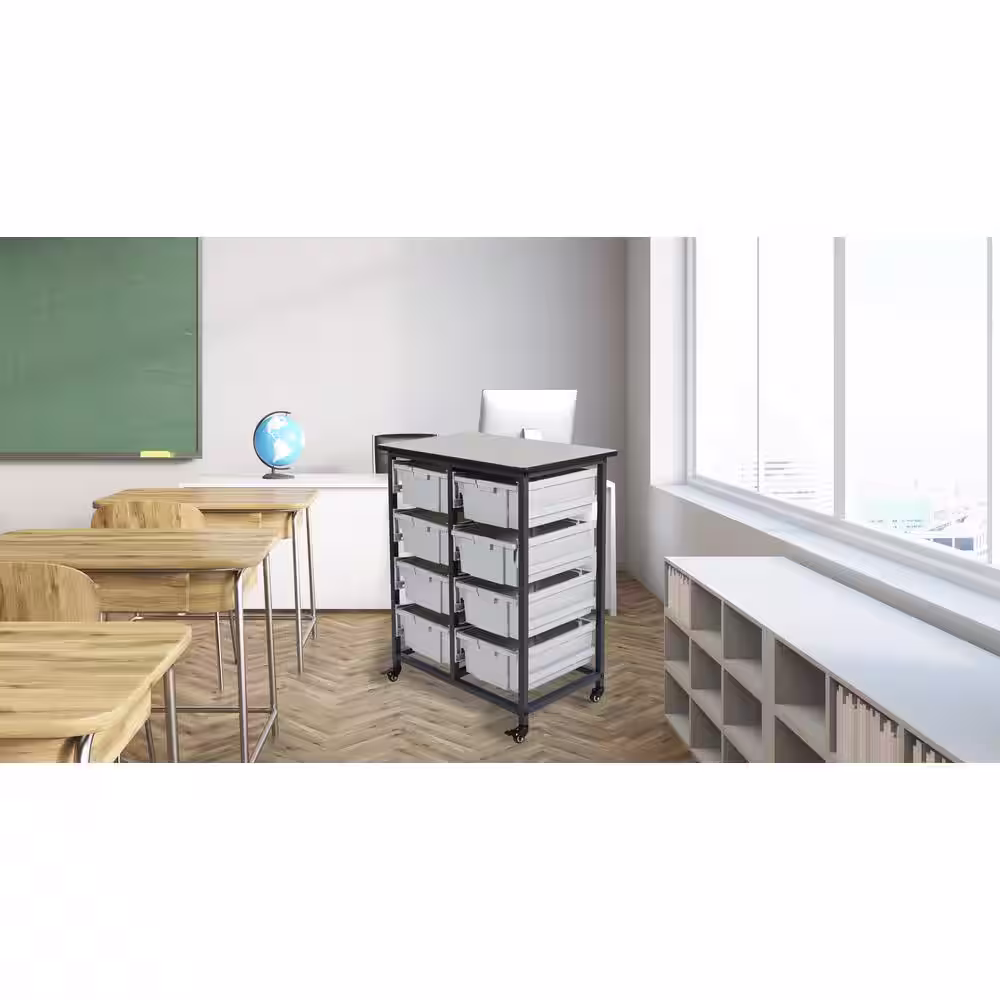 Luxor 30 in. x 19 in. Mobile Bin Storage Cart Double Row and Double Bin in Black Frame