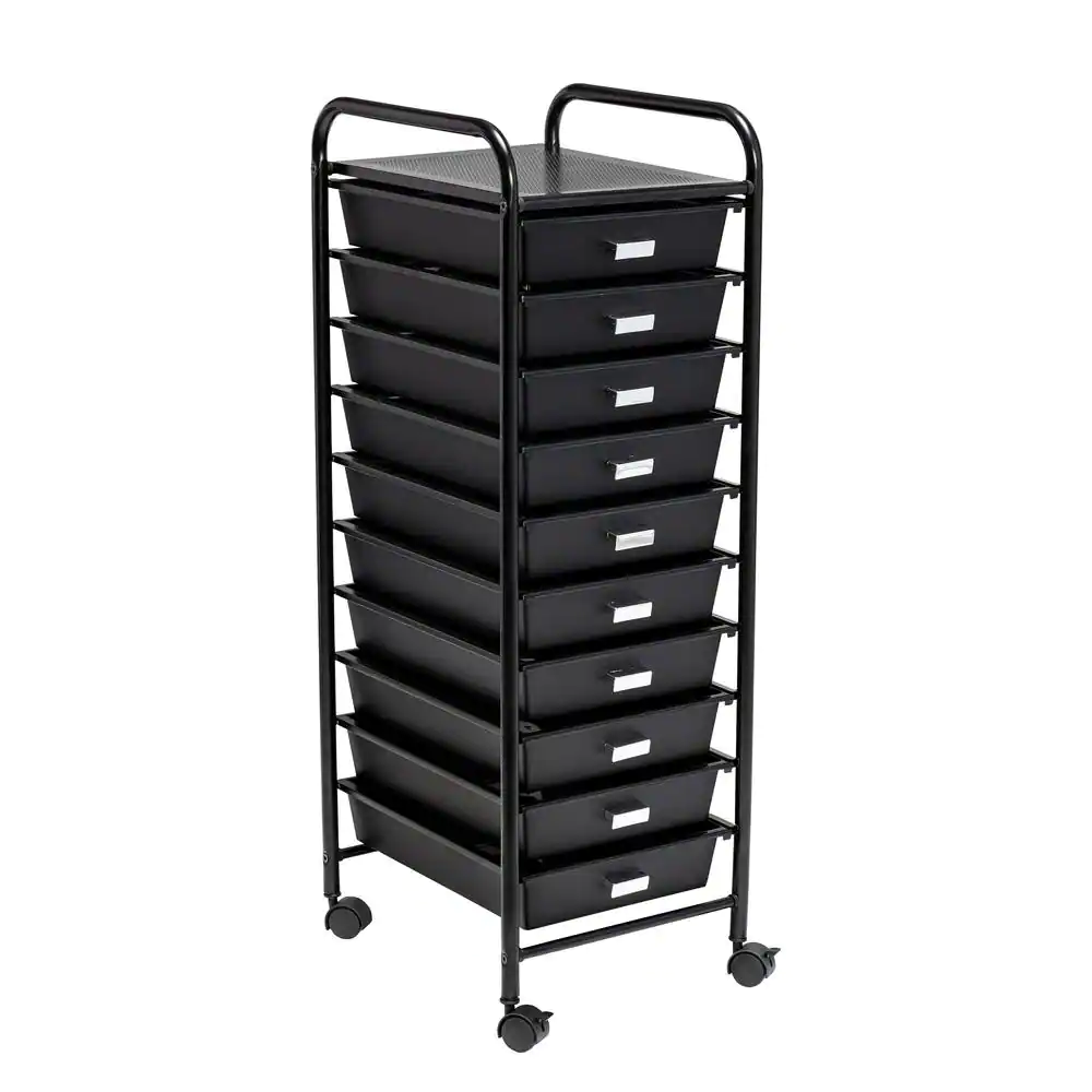 Honey-Can-Do Steel and Plastic Rolling 10-Drawer Cart in Black
