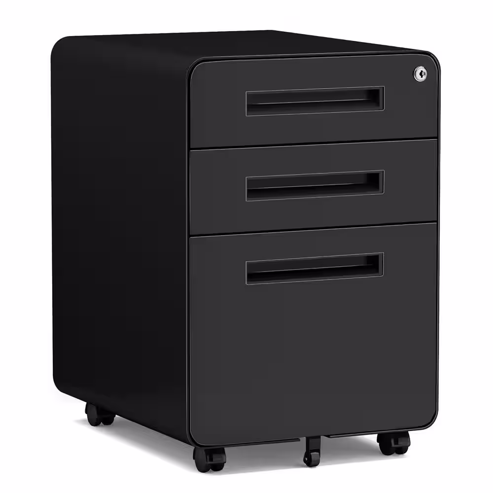 Mlezan Black 3-Drawer Mobile File Cabinet with Lock 17.7 in. D x 15.7 in. W x 22.8 in. H Deep Storage Drawer for Letter Legal