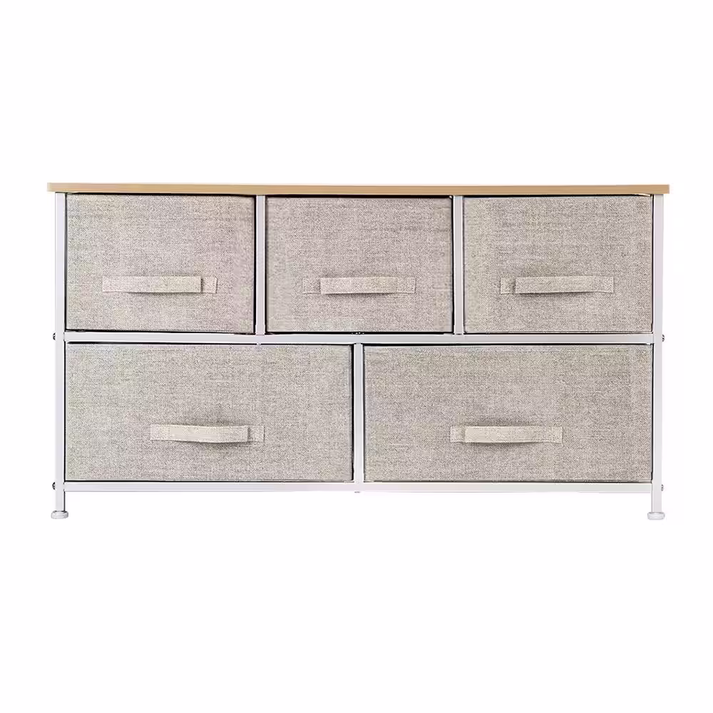 None 11.42 in. W x 21.65 in. H Beige 5-Drawer Fabric Storage Chest with Beige Drawers