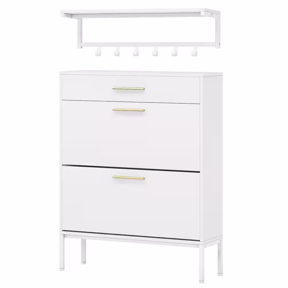 Tribesigns Sabina 43.3 in. H x 9.4 in. W X 31.5 in. D White Shoe Storage Cabinet with 2 Flip Drawers and Wall Shelf