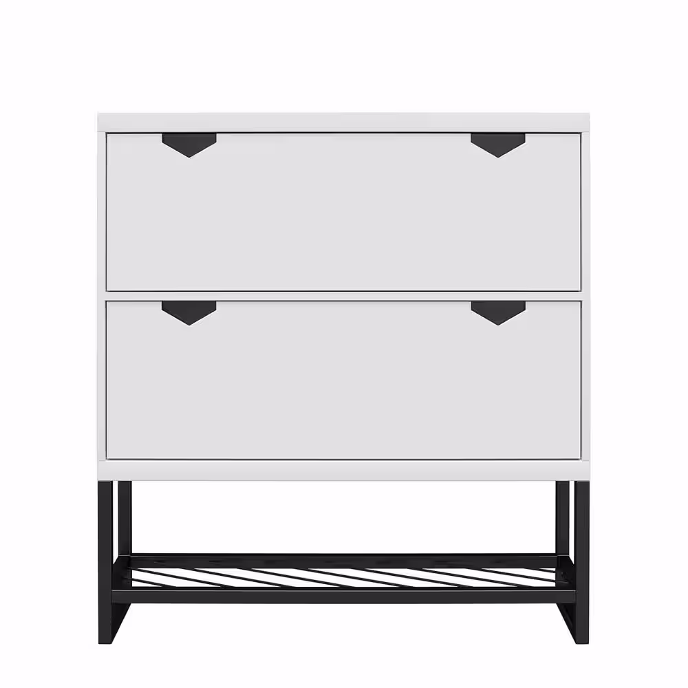 None 31.75 in. H x 30 in. W White Wood Shoe Storage Cabinet
