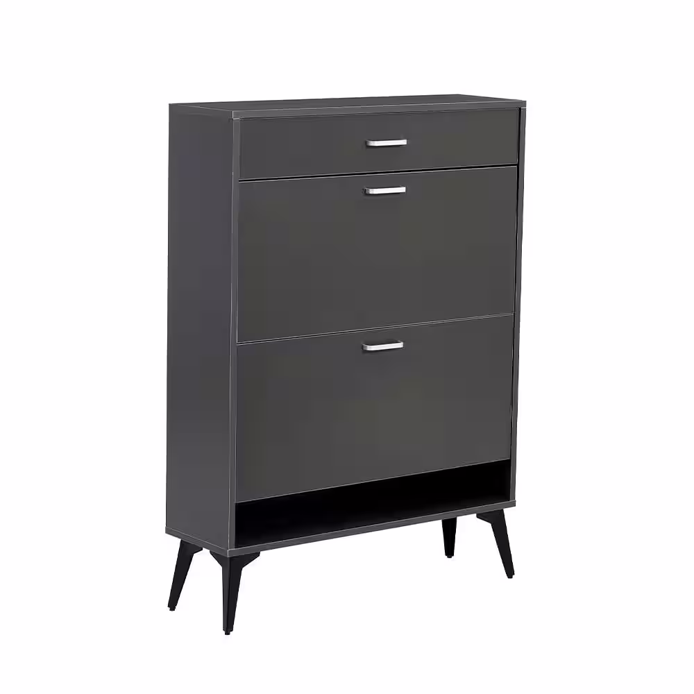 None 43.3 in. H x 31.49 in. W Gray 3-Drawer Wood Shoe Storage Cabinet with Removable Panels & 1 Open Shelf
