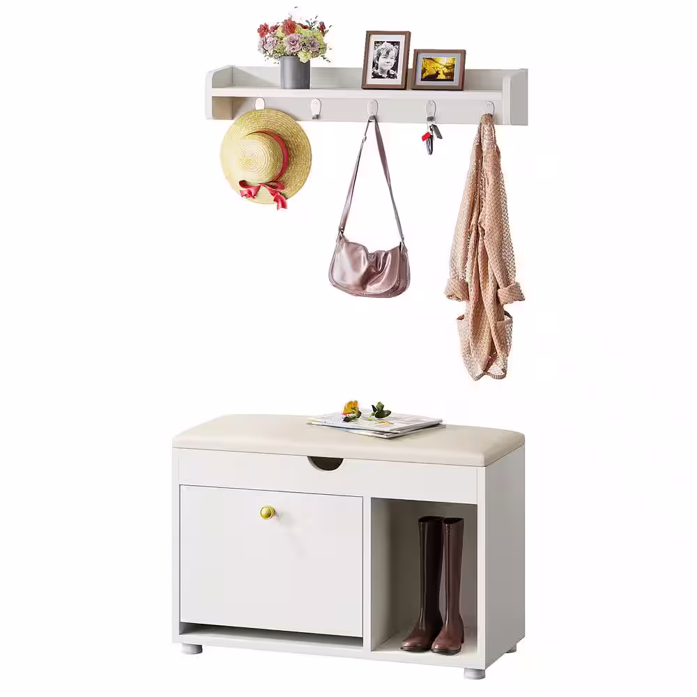 TRIBESIGNS WAY TO ORIGIN Cezalinda 19.69 in. H Shoe Storage Cabinet Bench Set 6-in-1 3-Tier Coat Rack Entryway Hall Tree Shoe Rack 5 Hooks Shelf