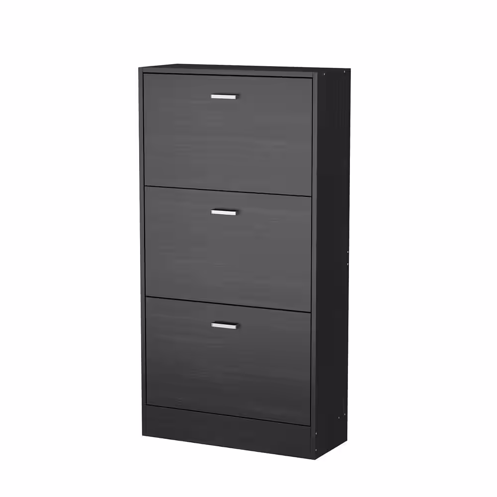 None 23.6 in. W x 45.5 in. H Black Wood Shoe Storage Cabinet with 6-Foldable Compartments up to 18-Pairs