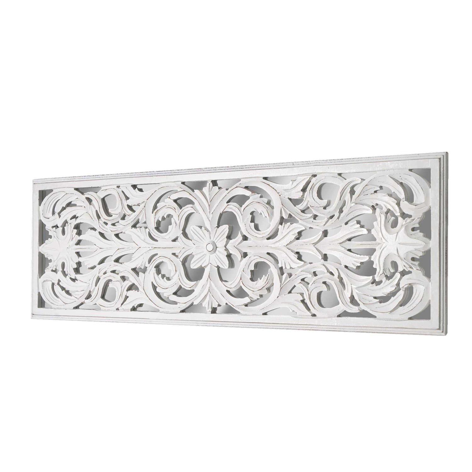 American Art Decor Distressed Reflective White Wood Wall Accent Medallion Panel