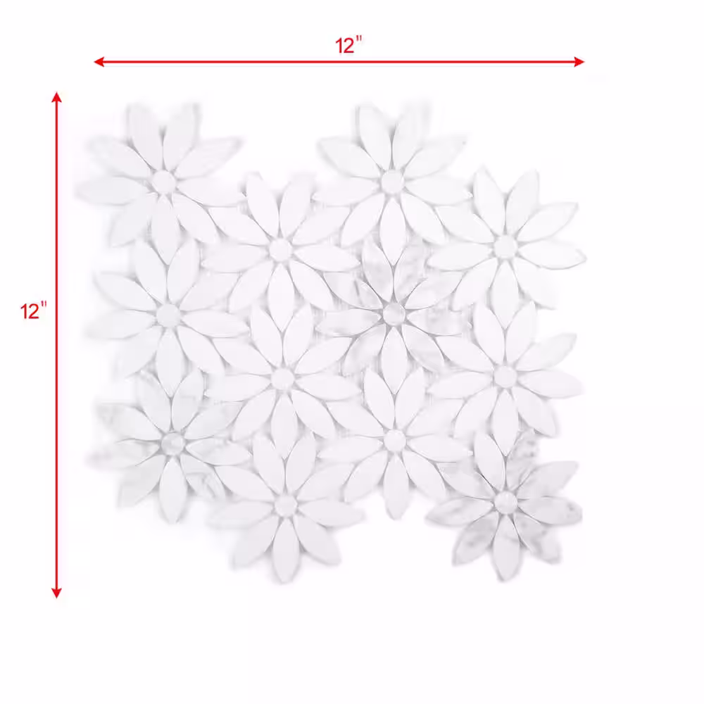 ABOLOS Hollywood Regency Calacatta White Flower Mosaic 12 in. x 12 in. Marble Decorative Wall Tile (10 sq. ft./Case)