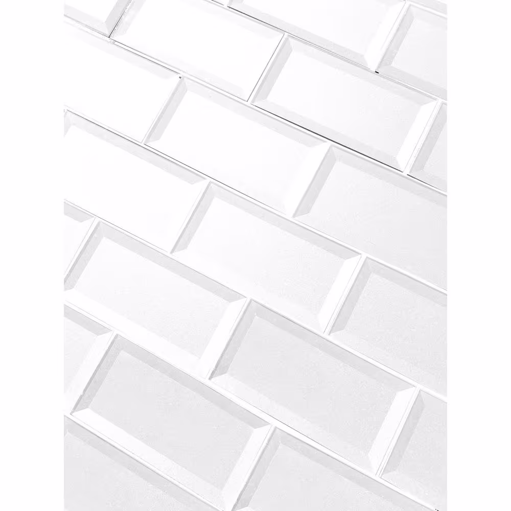 ABOLOS Secret Dimensions Bevel White Subway 3 in. x 6 in. Glossy Glass Decorative Backsplash Wall Tile (1 sq. ft./Pack)