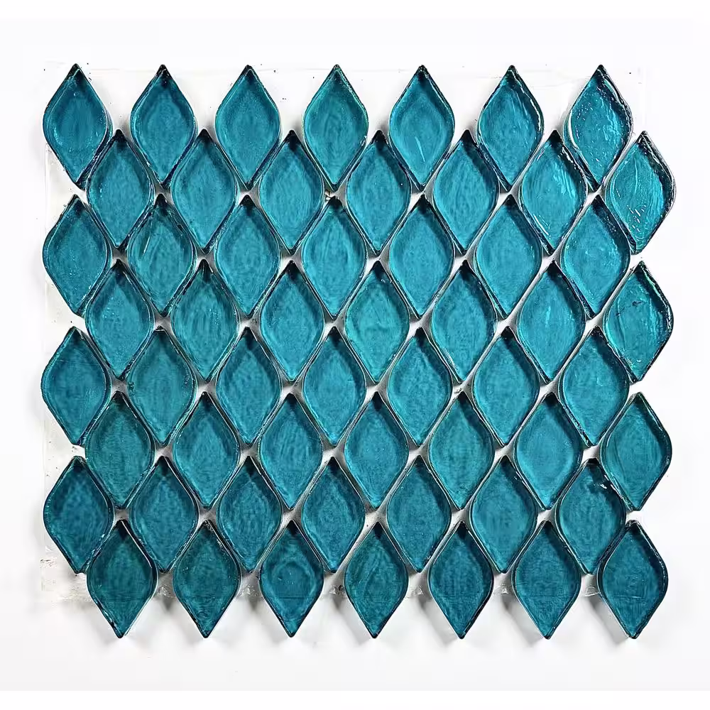 ABOLOS Tropical Style Sea Green Tear Drop Mosaic 12 in x 12 Recycled Glass Decorative Wall & Pool Tile (8 sq. ft./Case)