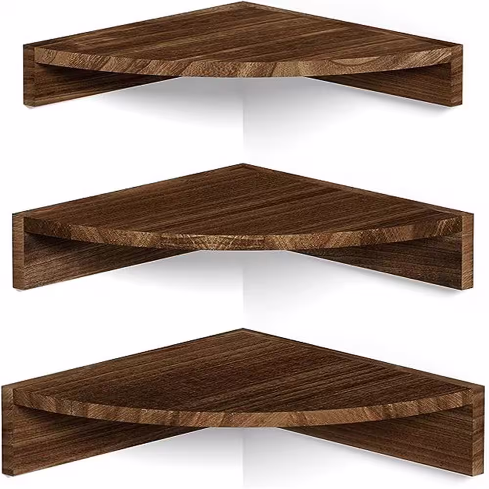 None 12 in. W x 12 in. D x 3.54 in. H Dark Brown Rustic Wood Corner Decorative Wall Shelf, (Set of 3)