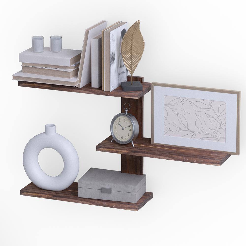 Kate and Laurel Melora 38.00 in. x 23.12 in. Walnut Brown Wood Floating Decorative Wall Shelf
