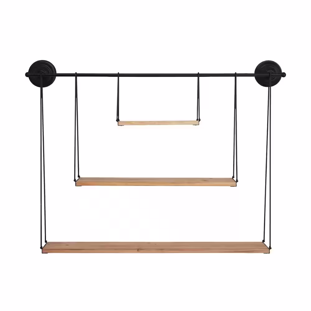 Stratton Home Decor 3 Tier Metal and Wood Wall Shelf