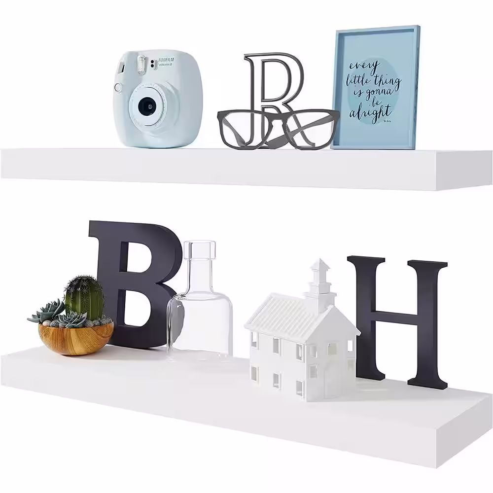 None 24 in. W x 6 in. D White Wood Composite Decorative Wall Shelf