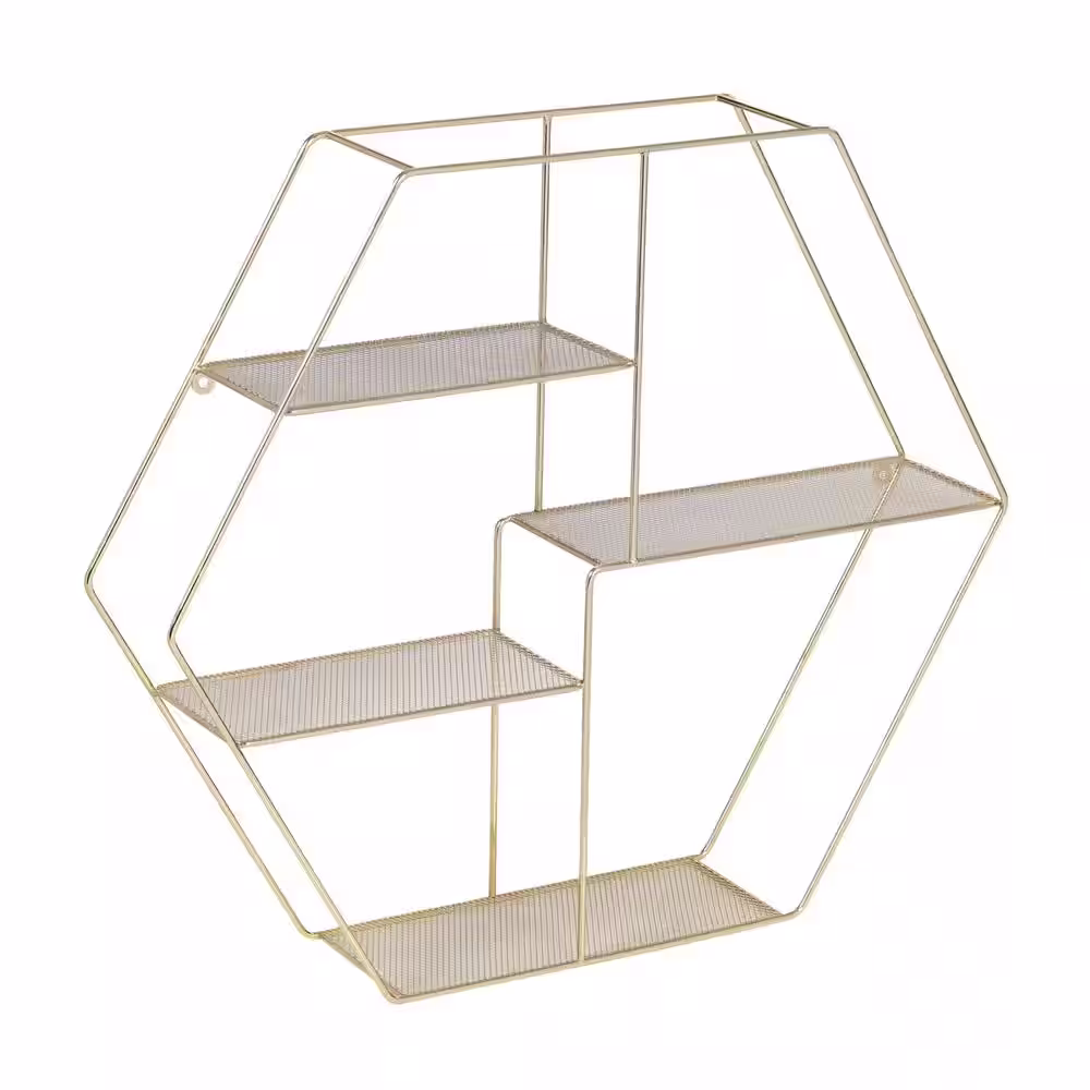 Honey-Can-Do 4.72 in. D x 23.82 in. L x 20.87 in. H Gold Steel 4-Tier Floating Decorative Wall Shelf