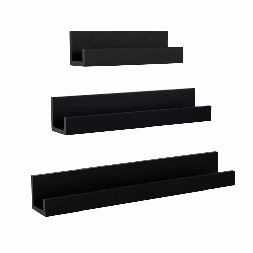 None 5.5 in. x 16.5 in. x 4.6 in. Black Wood Floating Decorative Wall Shelves with Metal Brackets (Set of 3)