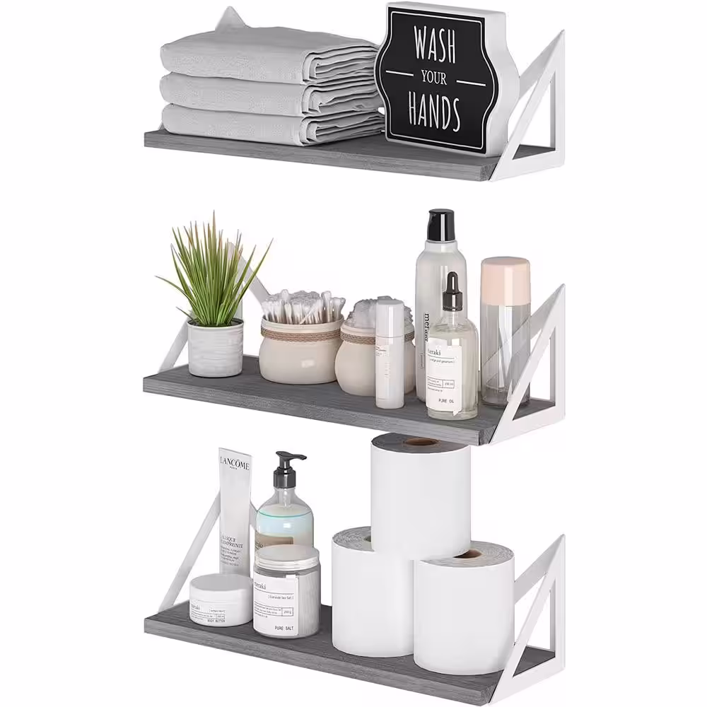 None 17 in. W x 6 in. D Gray Wood Composite Decorative Wall Shelf, Set of 3