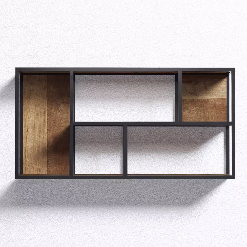 None 15.6 in. W x 5.1 in. D Brown Wood Decorative Wall Shelf Floating Wall Mounted Shelves, Set of 5
