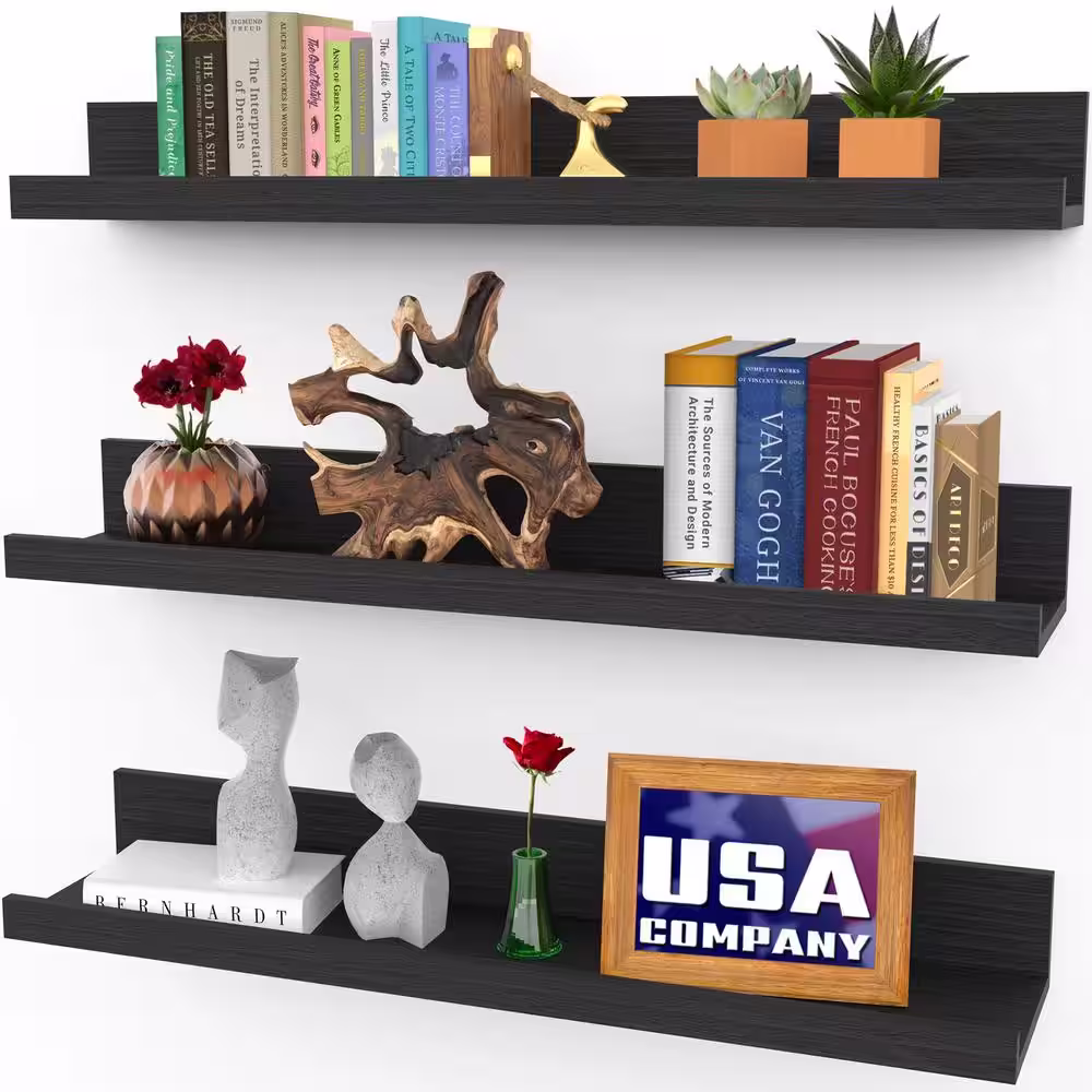 None 24 in. W x 7 in. D Black Wood Composite Decorative Wall Shelf