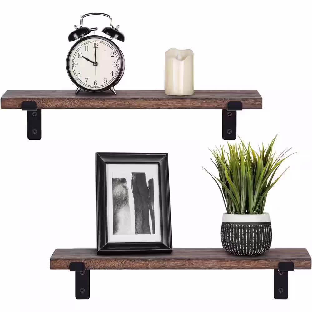 None 17 in. W x 5.9 in. D Brown Wood Composite Decorative Wall Shelf Floating Shelves Wall Mounted Set of 2