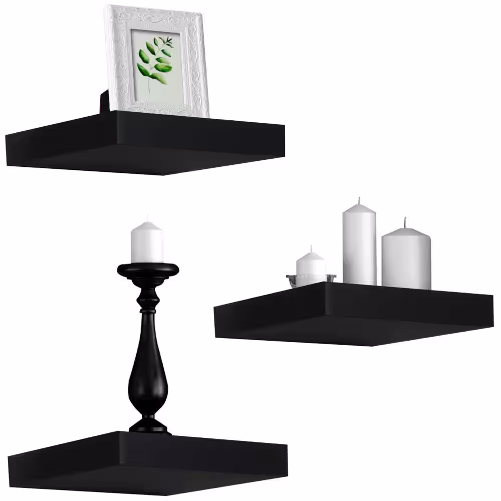 Sorbus 9.25 in x 9.25 in x 1.5 in Classic Black Wood, Square Decorative Wall Shelves with Brackets (3 Pack)