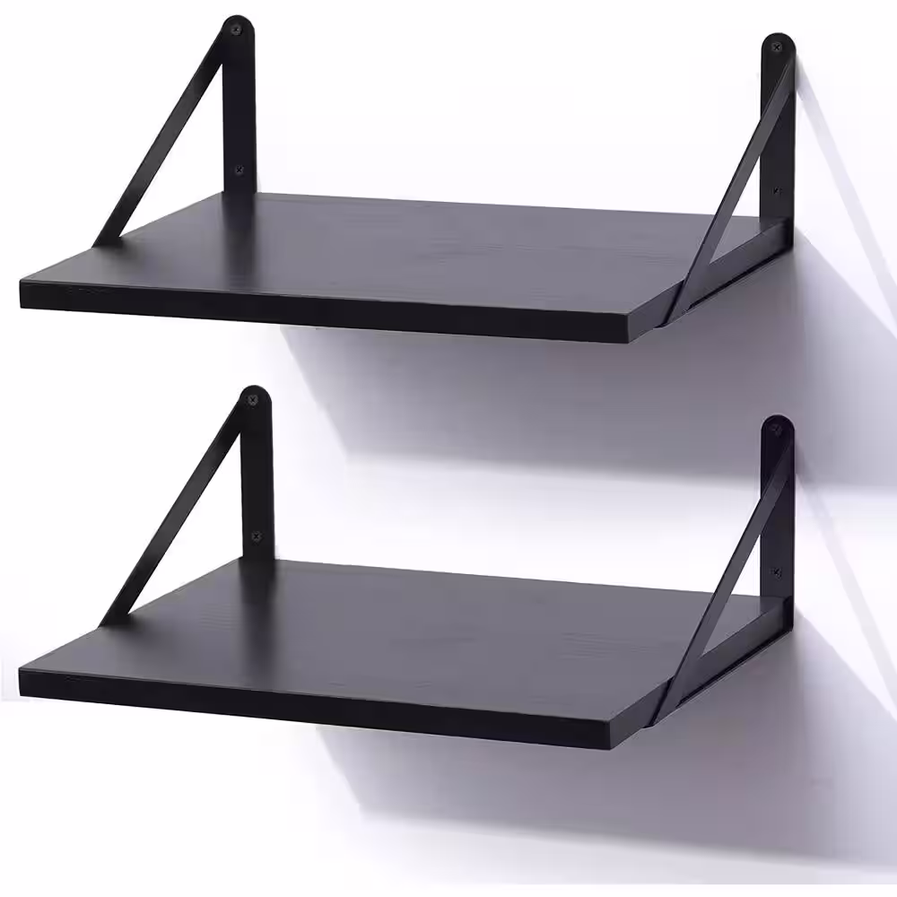 None 17 in. W x 12 in. D Black Wood Composite Decorative Wall Shelf, Set of 2