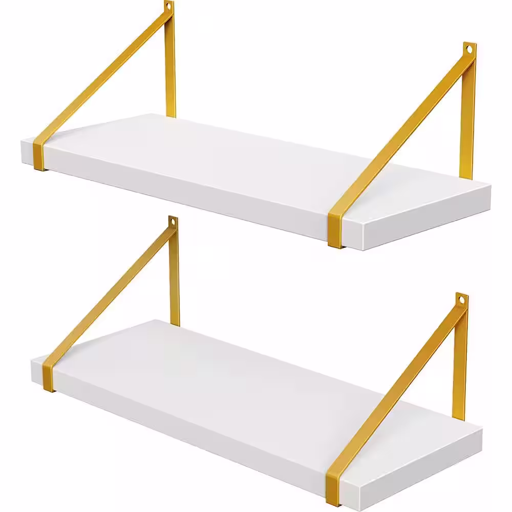 None 15.7 in. W x 5.5 in. D White Wood Composite Decorative Wall Shelf Floating Shelf Bracket, Set of 2
