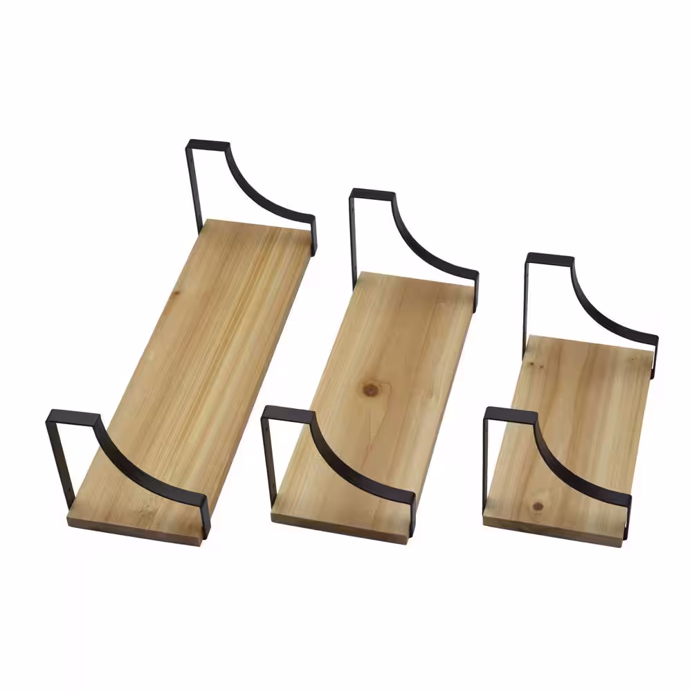 Melannco 4.38-in w x 18-in l x 4.5-in h-Natural Pine Floating Wood & Metal Curve Decorative Wall Shelf, Set of 3 without Brackets