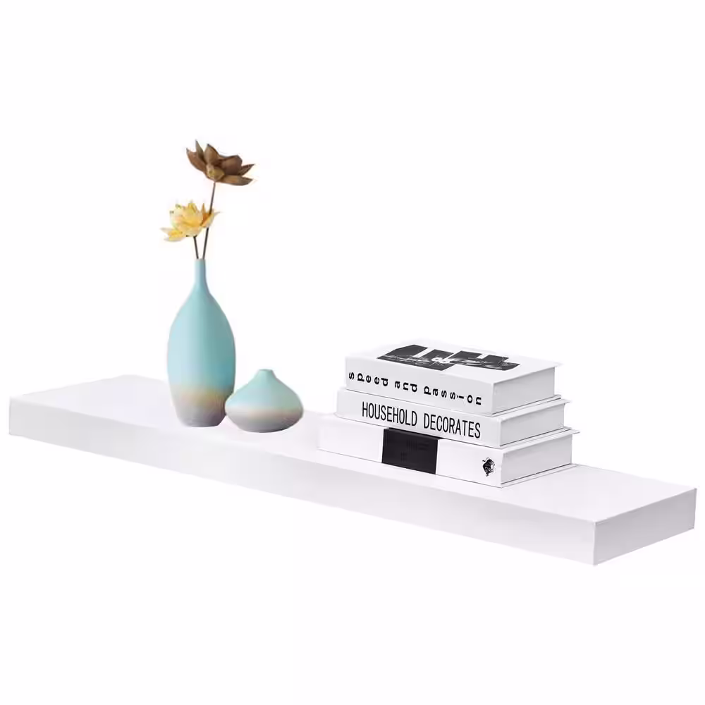 None 36 in. W x 9.25 in. D White Wood Composite Decorative Wall Shelf