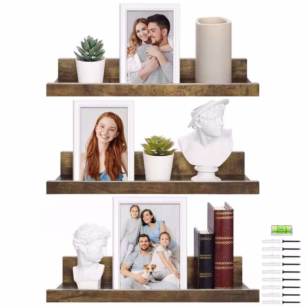 Cubilan 4 in. x 15.75 in. x 2.75 in. Walnut Brown Wood Decorative Wall Shelves (3-Piece)