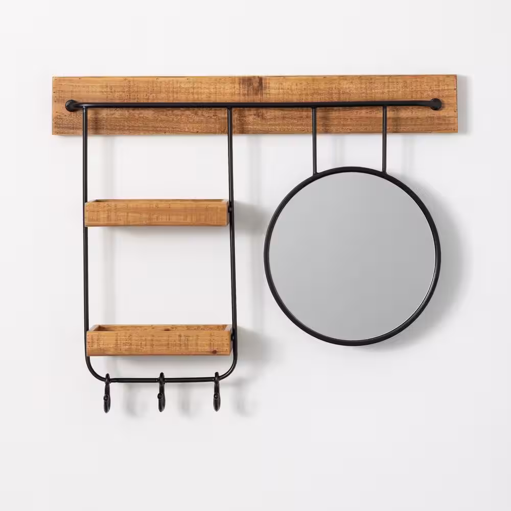 SULLIVANS 27.5 in. x 5 in. x 22 in. Brown Wood Decorative Cubby Wall Shelf with Mirror