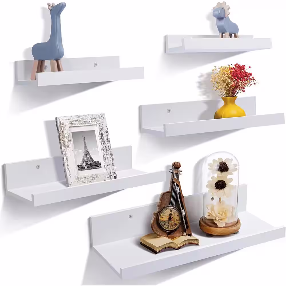None 15.7 in. W x 6.3 in. D White Wood Decorative Wall Shelf Floating Shelves, Set of 5