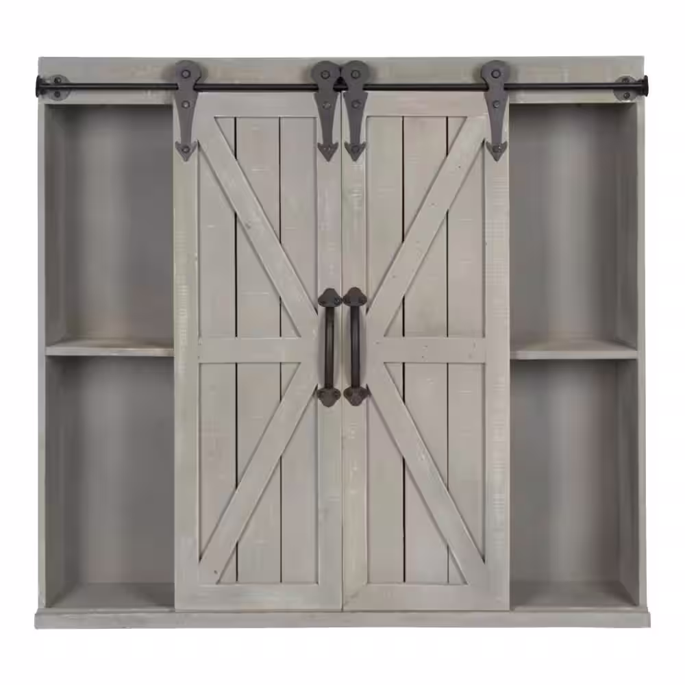 Kate and Laurel Cates 8 in. x 30 in. x 28 in. Gray Wood Decorative 2-Door Cabinet Wall Shelf