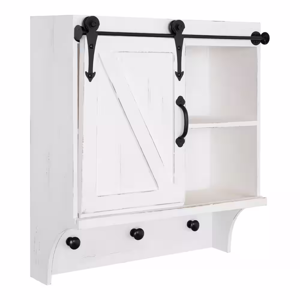 Kate and Laurel Cates 8 in. x 18 in. x 20 in. White MDF Floating Decorative Cubby Wall Shelf With Hooks Without Brackets