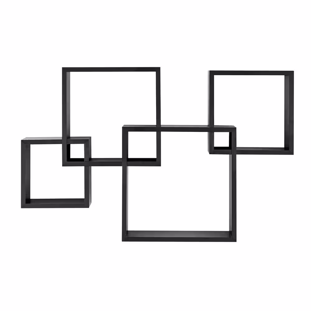 DANYA B Blocchetto 28.34 in. x 5.75 in. x 18 in. Intersecting Cubes Decorative Cubby Wall Shelf - Horizontal or Vertical - Black