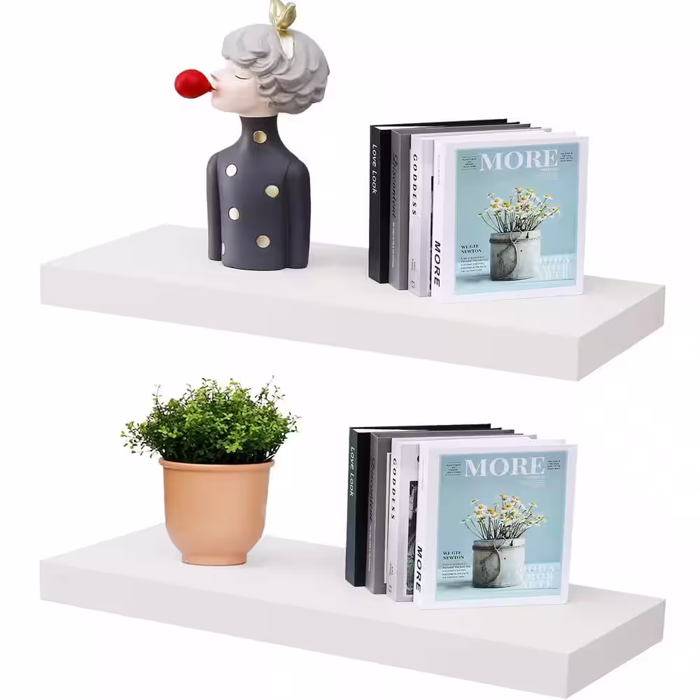 None 23.6 in. W x 8 in. D Wood Floating Decorative Wall Shelf (Set of 2)