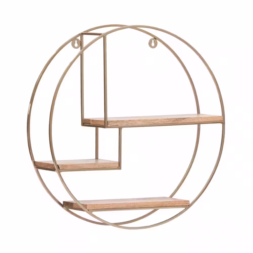 MH LONDON Marly 4.75 in x 19.5 in x 19.5 in. Gold and Natural Wood Iron and Wood Floating Decorative Round Wall Shelf