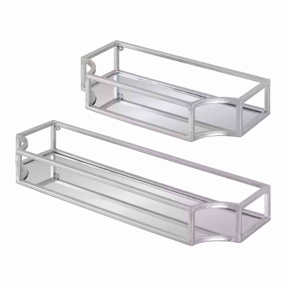 Kate and Laurel Ciel 6 in. x 18 in. x 3 in. Silver Metal Floating Decorative Wall Shelf Without Brackets